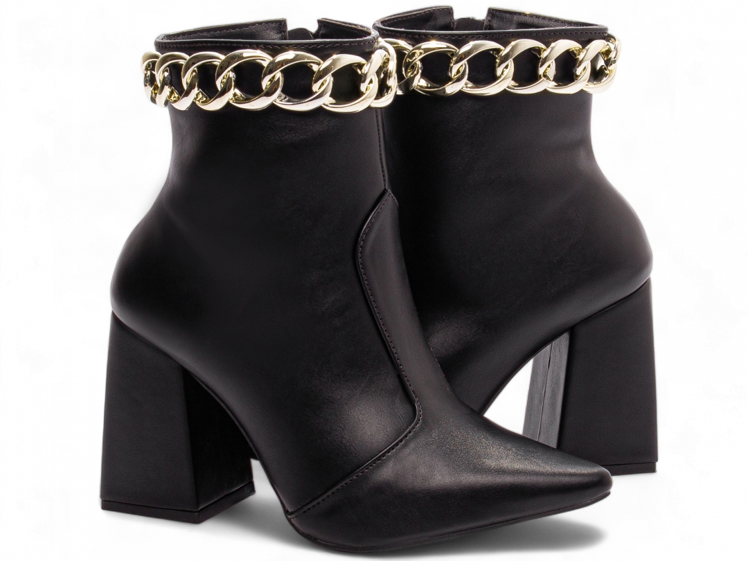 Enfeites: Zíper na Cor Preto (lateral interna) e Pulseira com Corrente na cor Dourado;