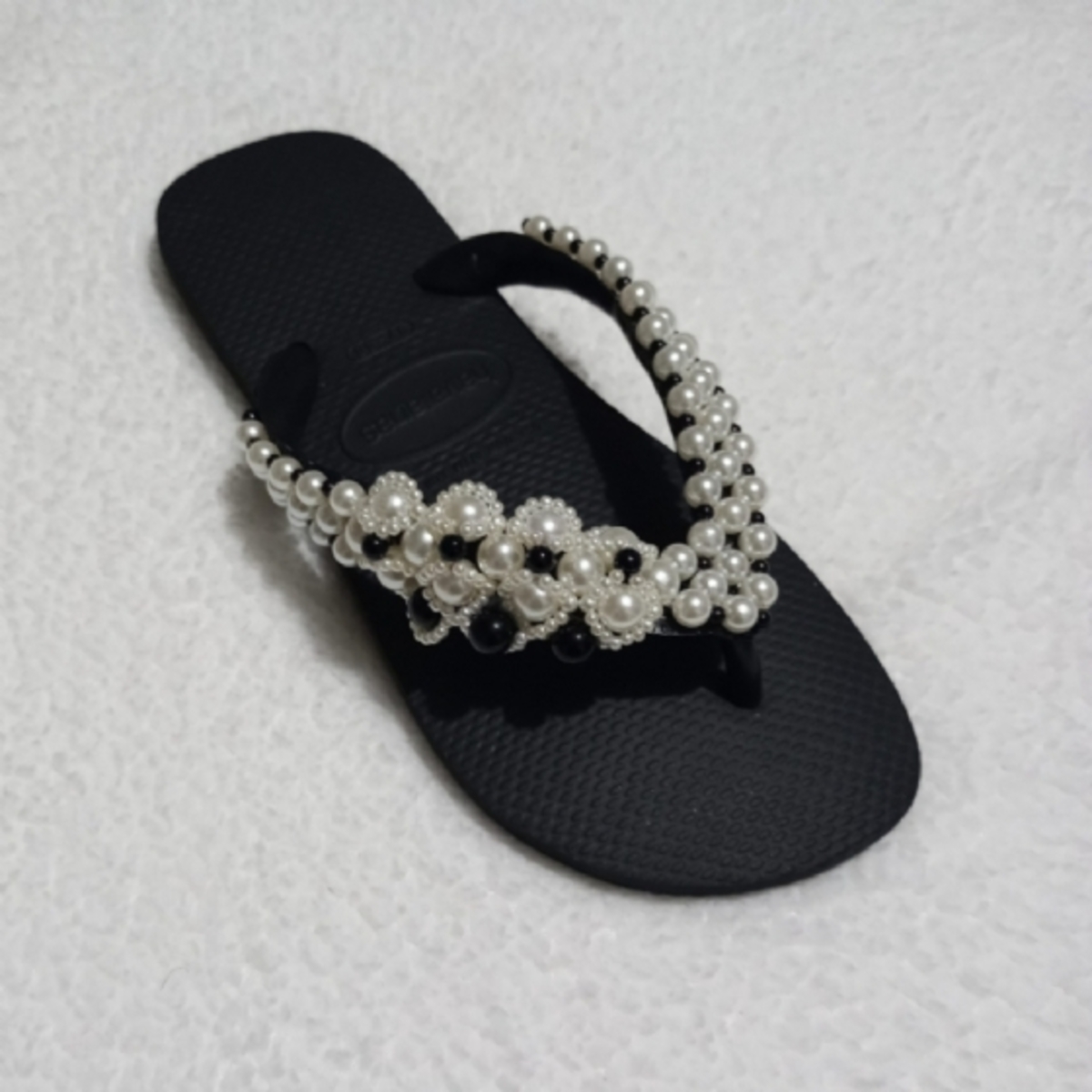 Chinelo Havaianas Top Preto com Pérolas Brancas e Detalhes em Pérola Preta – Clássico com Toque de Sofisticação!