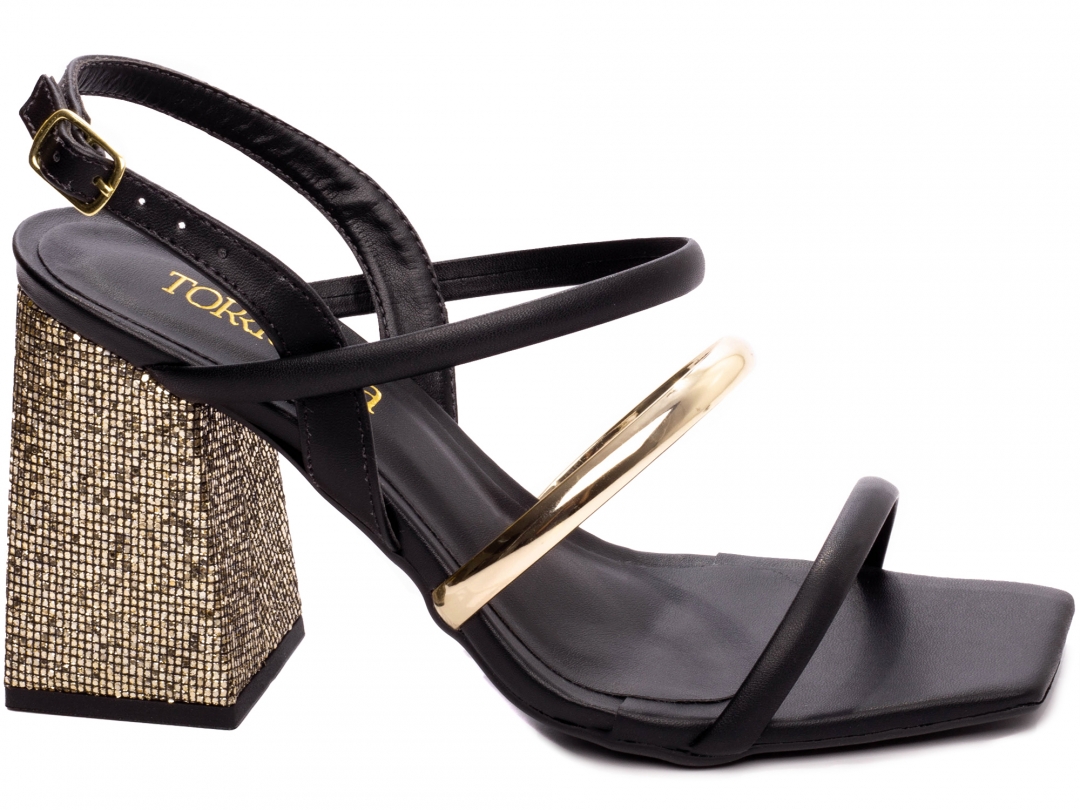 Sandália Feminina Napa Preto e Metalizado - Elegante e Confortável